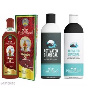 Pink Root Thanda Oil 200ml with Activated Charcoal Shampoo 200ml and Conditioner 200ml