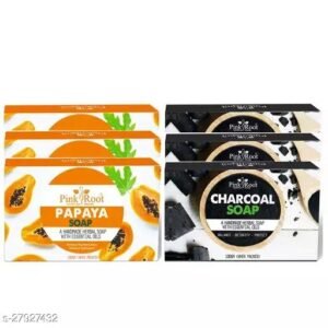 Pink Root Papaya Soap 100gm (Pack Of 3) with Charcoal Soap 100gm (Pack Of 3)