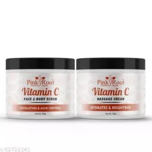 Pink Root Vitamin C Face & Body Scrub and Massage Cream 100g Combo