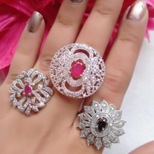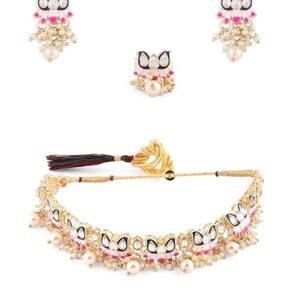 ZAVERI PEARLS Blue & Pink Meenakari Lotus Design Choker Necklace Earring & Ring Set For Women-ZPFK14435
