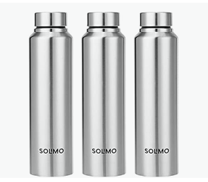 Amazon Brand – Solimo Slim Stainless Steel Water Bottle, Set of 3, 1 liter Each