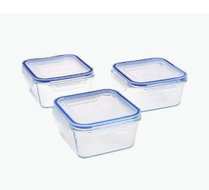 Amazon Brand – Solimo Square Glass Storage Container Set, 900ml, Set of 3, Transparent