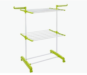 Amazon Brand – Solimo Premium Steel Double Supported 2 Layer Cloth Drying Stand, Foldable and Movable (White & Green)
