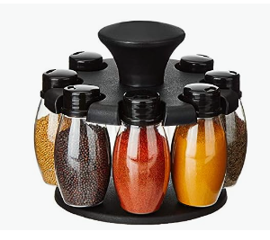 Amazon Brand – Solimo Upright Revolving Plastic Spice Rack, Ovals, 8 Pieces,Silver, Tiered Shelf