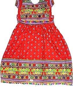 Baby Girl’s Cotton Jaipuri Print One Side Off Shoulder Top/Kurti And Printed Lehnga/Skirt With Dori Closure Dress Clothing Set