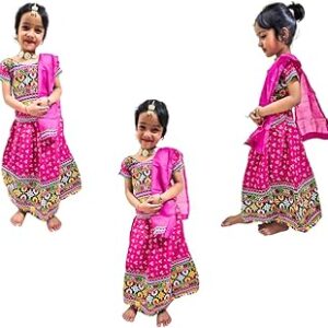 Besty Buddy Radha Rani Traditional Lehenga Choli Set, Pink Floral Print with Embroidered Border with Dupatta Janmashtami Radha Rani Dress