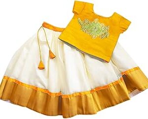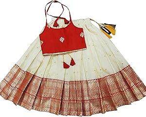 Baby Girls Cotton Silk Readymade Lehenga Choli Set | Traditional Embroidered South Indian Pattu Pavadai Ethnic Wear for Girls