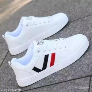 White Solid Casual Shoes For Men