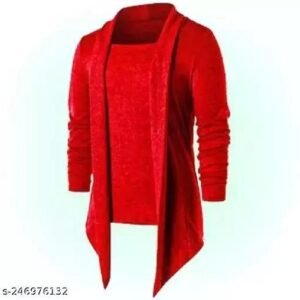 RiseMax Solid Red Color Square Neck Full Sleeves Shrug For Men