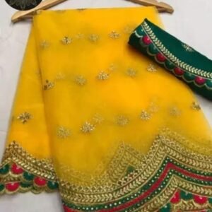 Bhagalpuri Embroidered Net Saree New Design of Good Quality (Yellow)