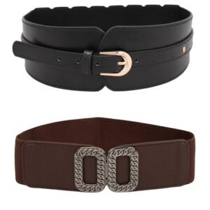 Set of 2 Wide Belts with Tang-Buckle Closure