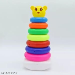 VRUX rainbow rocking stacker – wooden stacking rings toys for baby/kids learning or educational toys for boys (Multicolor)