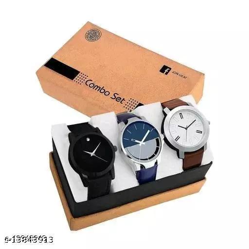 Attractive Men Black Faux Leather/Leatherette Analog Watch