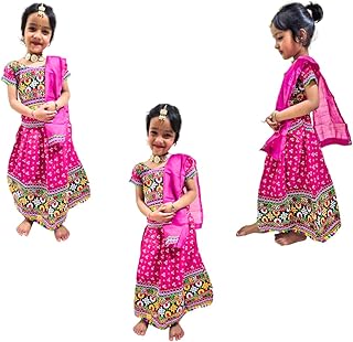 Be the first to review “Besty Buddy Radha Rani Traditional Lehenga Choli Set, Pink Floral Print with Embroidered Border with Dupatta Janmashtami Radha Rani Dress”