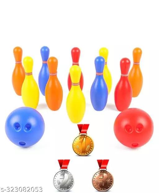Bowling Toy Set with 10 Pins and Two Balls Indoor Outdoor Sports Game for Kids-Delux Bowling,Multicolor