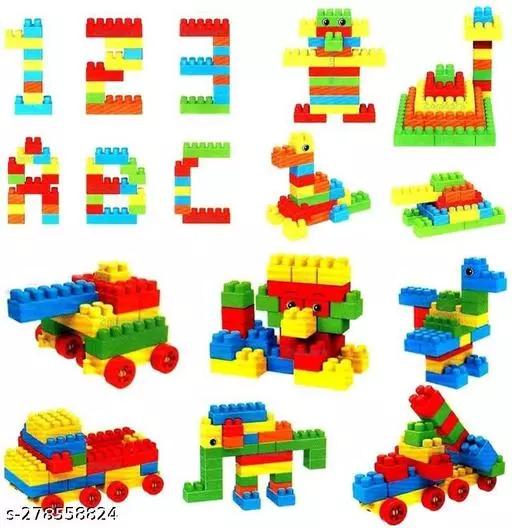 Building Blocks 50+ Pieces Bricks Blocks for Kids and Children for Game Learning Train Brick Block Puzzle Toys Girl Boy Activity Fun Games Platic Mind Education Toy Smooth Rounded Edges Boys Girls Deal Game