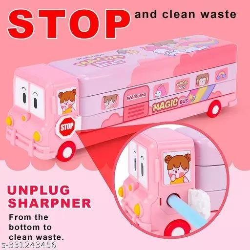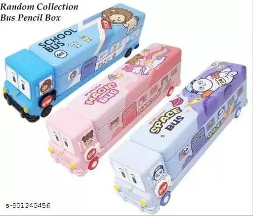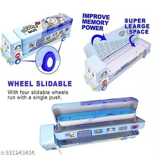 Bus Pencil Box for Girls Compass Box for Girls with Wheel Stylish School Bus Geometry Box for Boys Car Pencil Box Set Bus Toys for Kids 3+ Years Kids Geometry Box Pen Box Multi Color ( 1 Pcs )