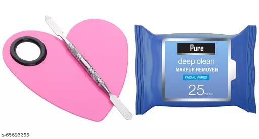 Calitate24 Makeup Mixing Palette Stainless Steel Plate with Spatula Foundation Cream Blending Tool Cosmetic Color Mixing Heart Shape Tray with 7pcs Pedicure Kit