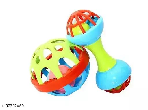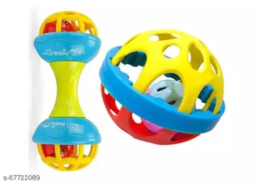 Colorful Soft Ball and Dumbbell Combo Rattle Toy for Baby Bath Safe Non-Toxic Teether Babies 2months+ Sorting, Stacking Plugging Toys Children Toy and…