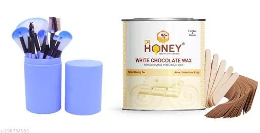 DR HONEY white chocolate wax hair removal wax for all skin and full body 600 gram wax and Cosmetic Makeup Brush (Pack of 12) Eye-Shadow Makeup Brush Set blue