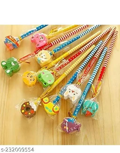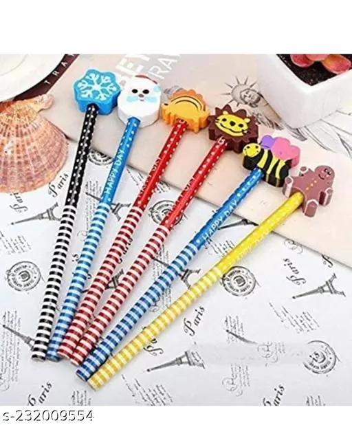 IMTION ® Combo ( 24 Pcs Cartoon Printed Pencils with Eraser + Free Smiley Sticker ) for Kids Birthday return gift
