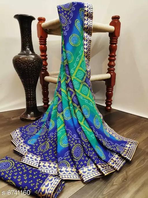 Kanooda Prints Bandhani Print Heavy Designer Goft Georgette Saree With Blouse Piece