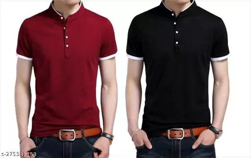 KEESOR Solid Men Mandarin Collar Full Sleeves T-Shirt | Mens Full Sleeves Cotton Tshirt | Regular Fit Cotton Tshirt for Men