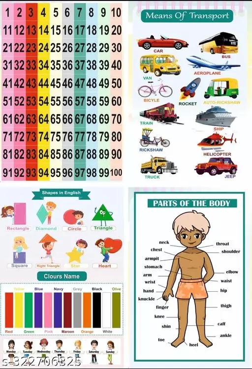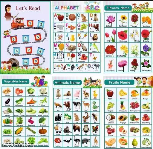 Kids learning Picture Book Collections for Eary Learning,Laminated Book, Non-Tearable and Waterproof, ALphabet, ABCD, 1234 Latter, Numbers Counting Tables, Colours & Shapes, Flowers, Fruits, Vegetables, Vehicles, Birds, Domestic animals, Wild Animals, Parts of the Body & Professions.