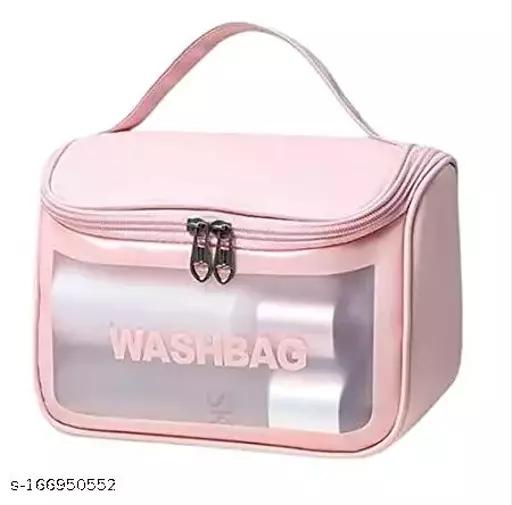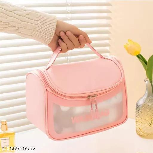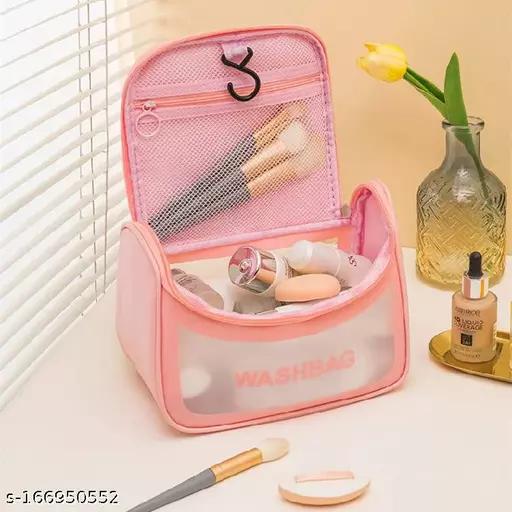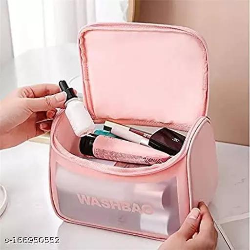KINDRED Transparent Makeup Pouch Toiletry Bag Clear Zippered Cosmetic Bag Travel Wash Make Up Bag Cosmetic Organizer for Men and Women,Girls. ( pink color , pack of -1)