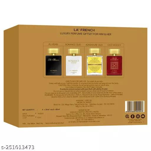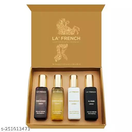 La French Luxury oudh Perfume Gift Set 4x20ml (Adventure Oud| Romance Oud| Al Hisan & Oud Woody| Long Lasting Fragrance Scent Pack of 1| for men & women