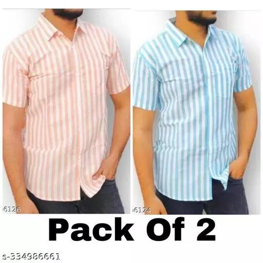 Men Slim Fit Striped Spread Collar Formal Half Sleeve Shirt