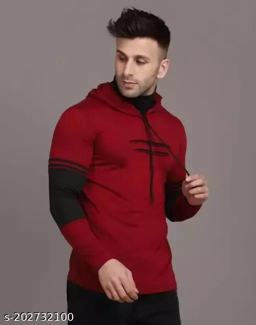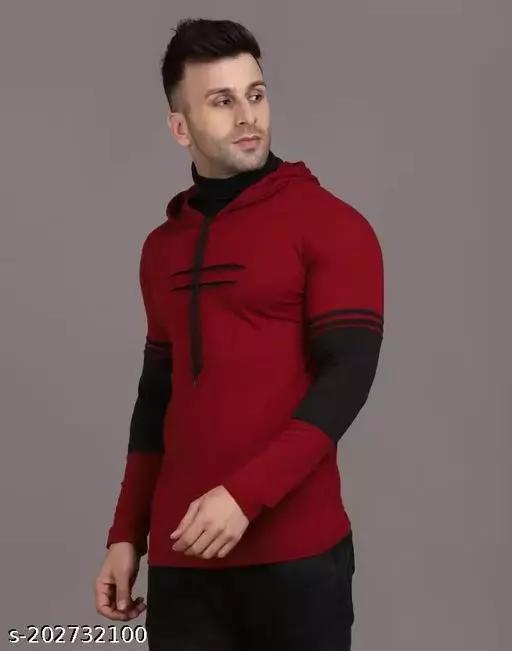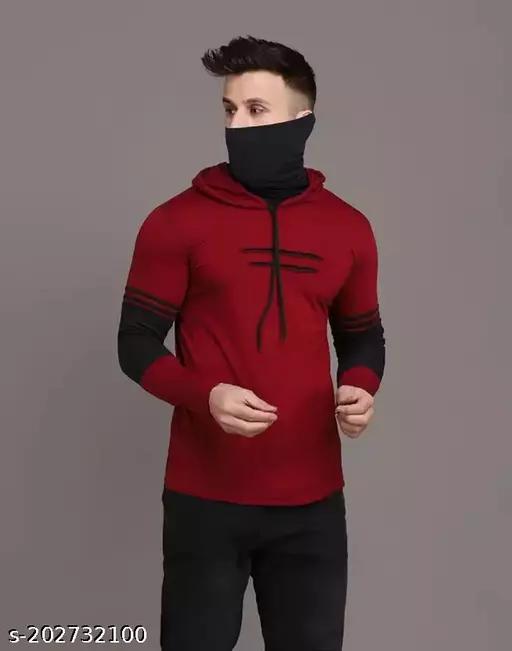 Men’s T-Shirts”””””Trendy Modern Maroon Printed Cotton”””””Men’s Full T-Shirts with Built-In Mask