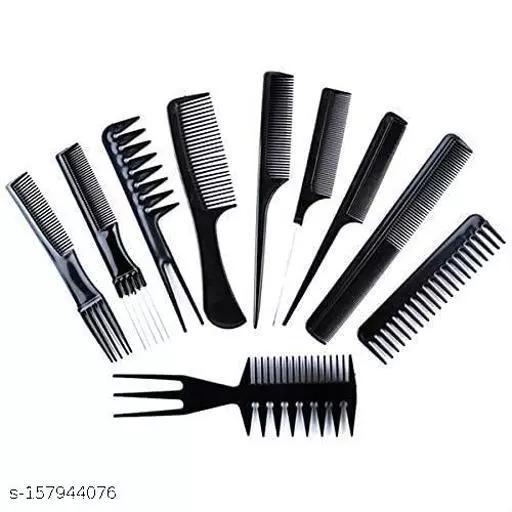 New Professional Multipurpose 10 Pcs Hair Comb Set Hair brush for Hair Cutting and Styling (BLACK)