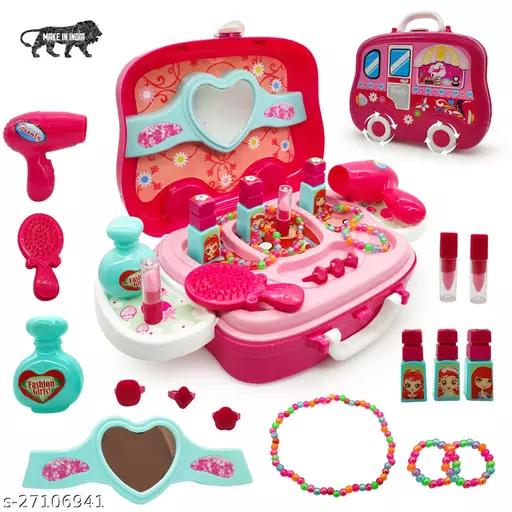 NHR Beauty Make Up Case And Cosmetic Set Wheel Suitcase with Makeup Accessories For Children Girls, Play set for Girls