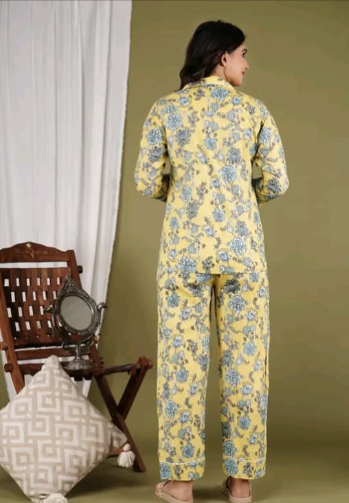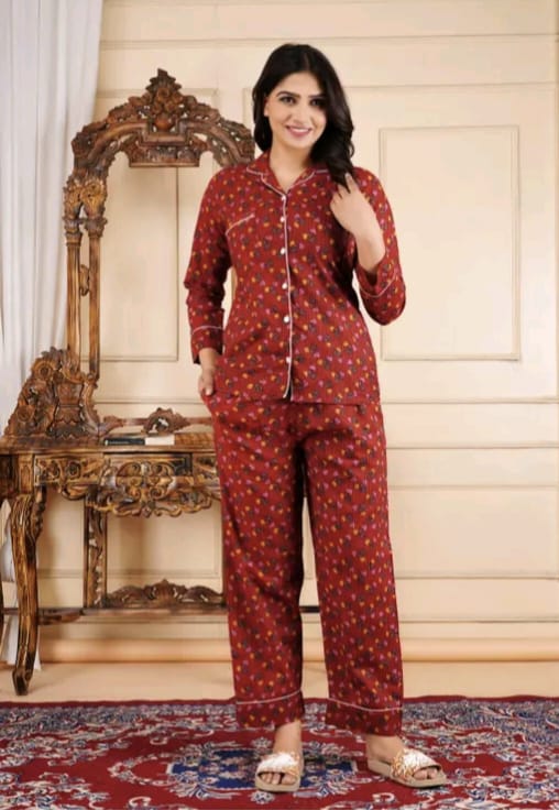 Experience the ultimate comfort with our cotton printed night suit. Made from soft and breathable cotton, this nightwear is perfect for a restful sleep. The stylish prints add a touch of personality to your sleepwear collection. Ideal for lounging around the house or sleeping in.