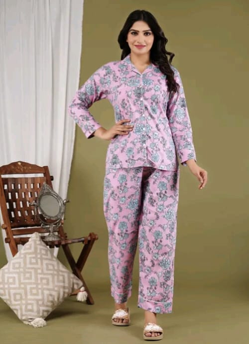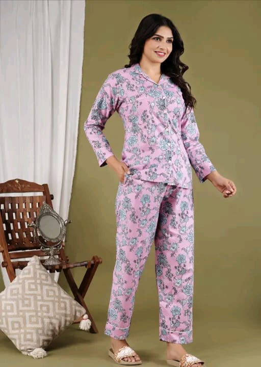 Experience the ultimate comfort with our cotton printed night suit. Made from soft and breathable cotton, this nightwear is perfect for a restful sleep. The stylish prints add a touch of personality to your sleepwear collection. Ideal for lounging around the house or sleeping in.