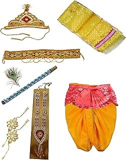 Pakhi Feather Little Krishna Dhoti Dupatta Set – Yellow Set with Fan (9 – 12 Months)