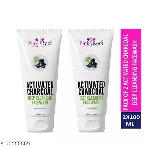 Pink Root Activated Charcoal Deep Cleansing Facewash 100ml with Neem Tulsi Purifying Facewash 100ml