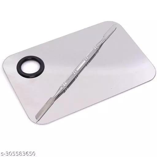 Professional Cosmetic Makeup Mixing Plate with Spatula Tool (Silver) Korean