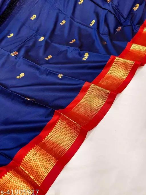 Sanskar Traditional Paithani Cotton Silk Sarees With Contrast Blouse Piece (Navy & Red)