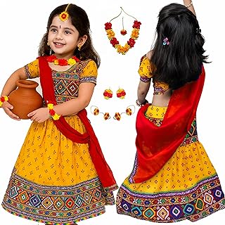 Shree Krishna Dress for Baby Boy & Radha Dress for Girls | Janamashtami Dress | Fancy Dress Costume with Accessories Dhoti, Dupatta, Mukut Flute Complete set 3, Ethnic wear