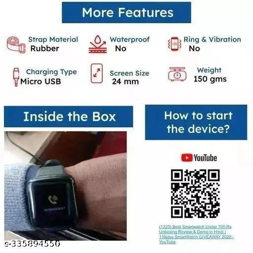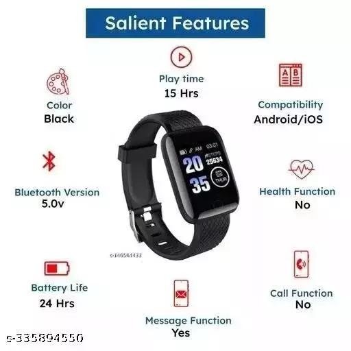 Smartest ID116 Plus Bluetooth Smart Fitness Band Watch with Heart Rate Activity Tracker Waterproof Body, Step and Calorie Counter, Distance Measure, OLED Touchscreen for Men/Women, smart watch