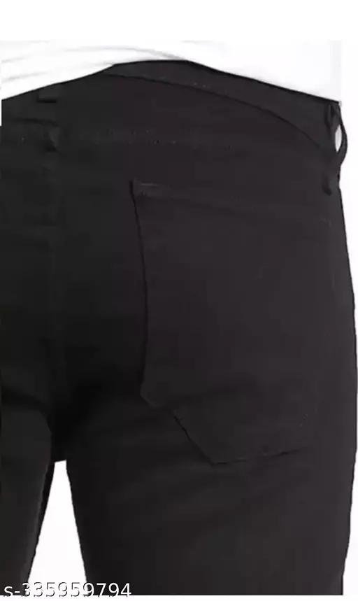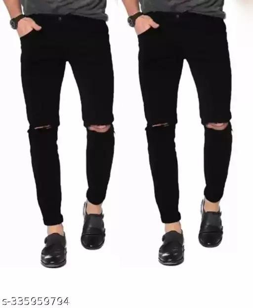 Trendy Men Comfortable Cotton Black Knee Cut Jeans Pant_Men Solid Pant_Men Plain Jeans