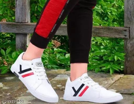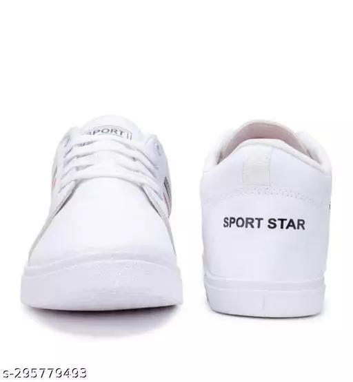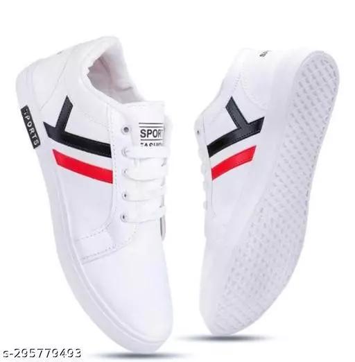 White Solid Casual Shoes For Men