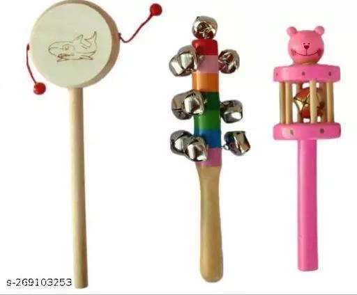 Wish Online oys Wooden Rattle Toys for Baby | New-Born Infant Kids ( Set of 3 pcs ) Non Toxic | Musical Instruments | wonderful toys and gift for a newborn. Note :- Design May Vary
