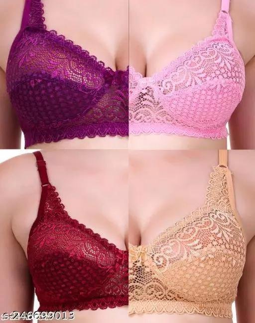 Women Fancy Stylish Women Everyday Lace Bra pack of 4 (multicolor)