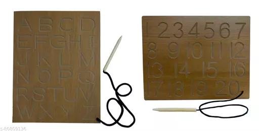 Wooden Combo Alphabet & Number 1-20 Writing Laminated Tracing Board with Dummy Pencil
