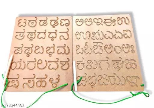 YDV CRAFT WOODEN KANNADA TRAICING SLATE WIRTING IMPROVING TOYS PRESCHOOL KIT STUDY MATERIAL FOR KIDS CHILDRENS varnamala Alphabet letter cursive writing tracing practice boards Slate with Dummy Pencil Vowels consonants Letters Learning Boards for Kids Boys Girls Age 2 3 4 Years