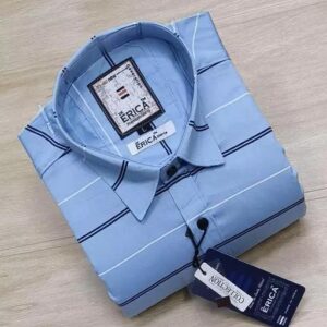 Men’s Casual Party Wear Solid Striped Full Sleeves Premium Cotton Shirt (Sky Blue)